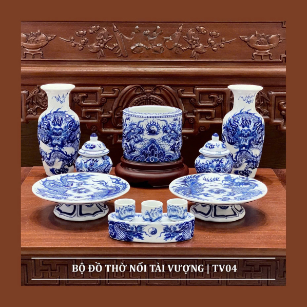Bộ Đồ Thờ Nổi Tài Vượng Men Lam