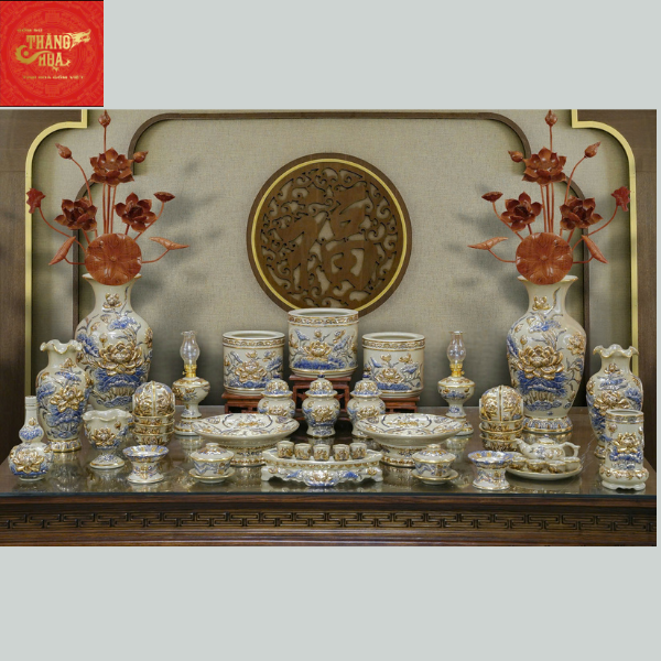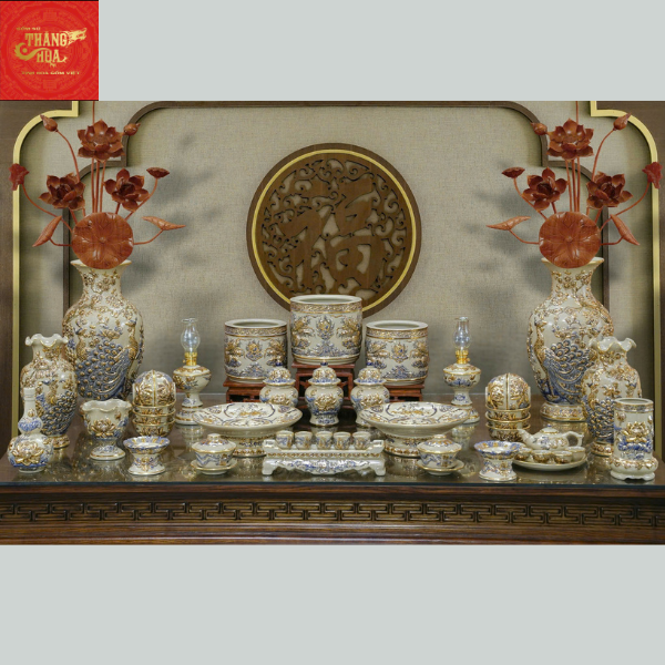 Bộ Đồ Thờ Đắp Nổi Vẽ Vàng Men Hoàng Thổ
