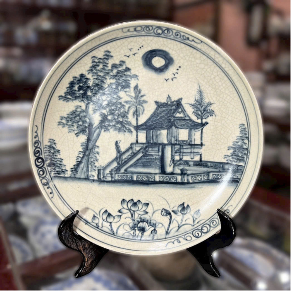Đĩa Cảnh Men Rạn-Vẽ Cảnh Chùa Một Cột