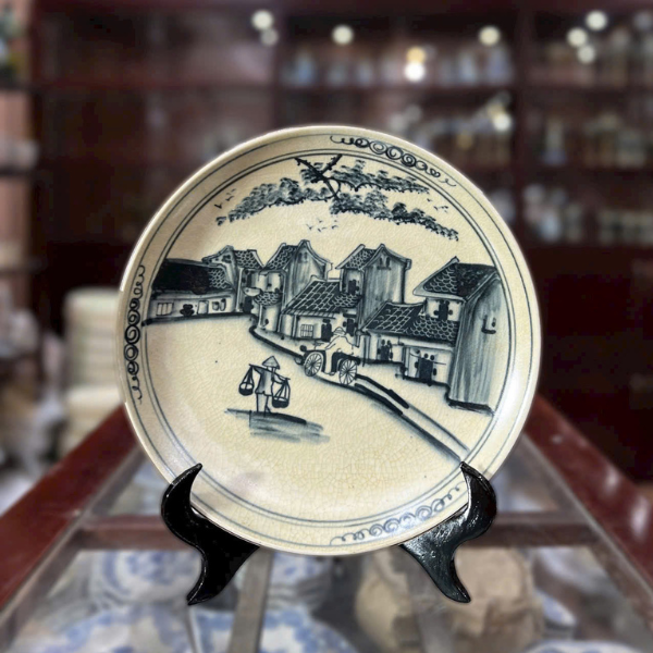 Đĩa Cảnh Men Rạn-Vẽ Cảnh Phố Cổ