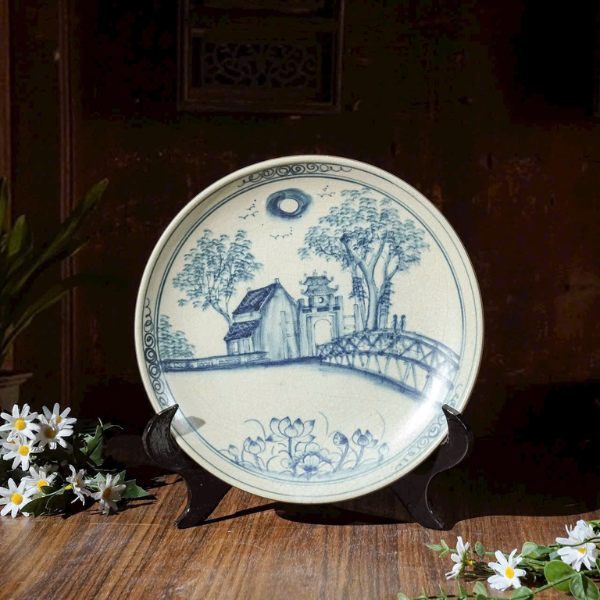 Đĩa Cảnh Men Rạn-Vẽ Cảnh Cầu Thê Húc