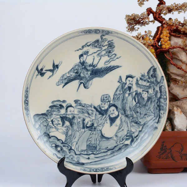 Đĩa Cảnh Men Rạn-Vẽ Cảnh Bát Tiên