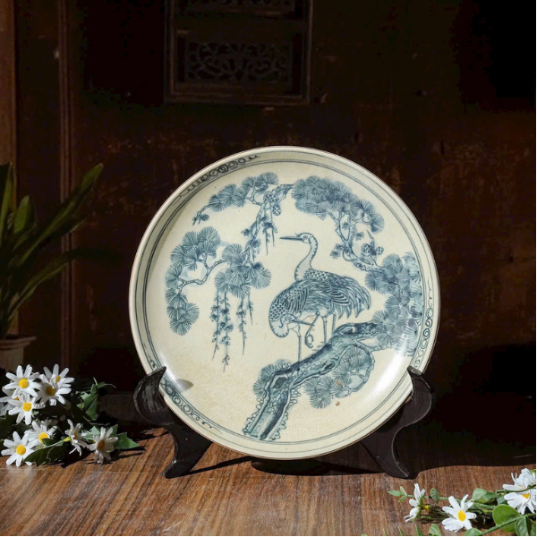 Đĩa Cảnh Men Rạn-Vẽ Cảnh Tùng Hạc