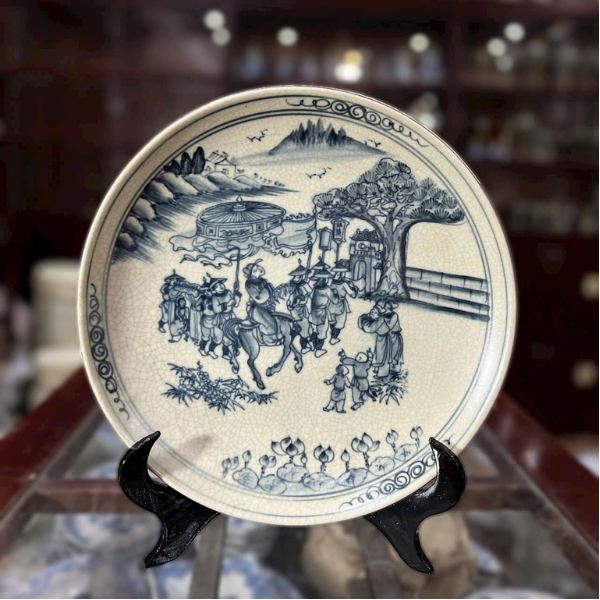Đĩa Cảnh Men Rạn-Vẽ Cảnh Vinh Quy Bái Tổ