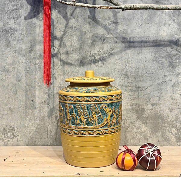 Hũ Gạo Vuông Trống Đồng Màu Vàng