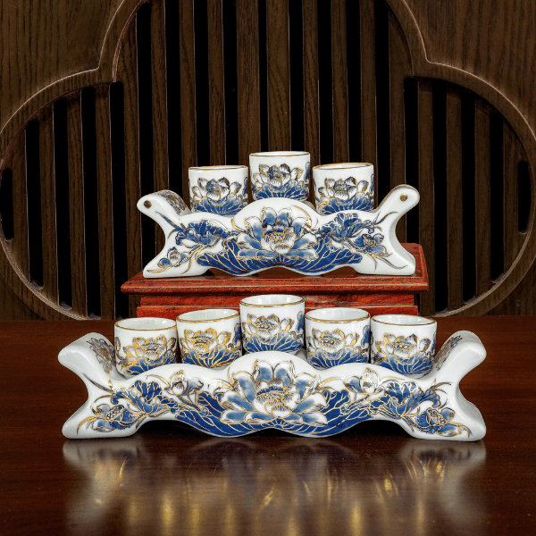 Kỷ Chén Hoa Sen Men Lam Vẽ Vàng
