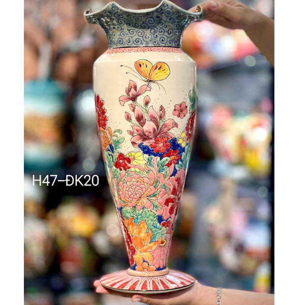 Lọ Cắm Hoa -Vuốt Tay-Họa Tiết Trăm Hoa H47