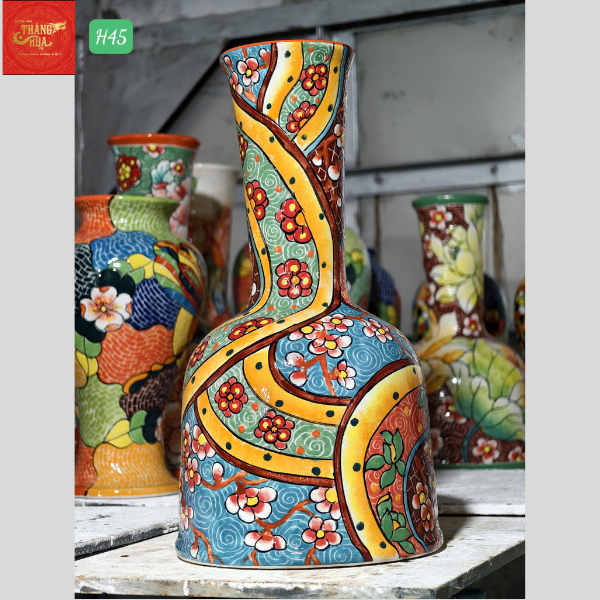 Lọ Hoa Cổ Thẳng Nền Gấm H45