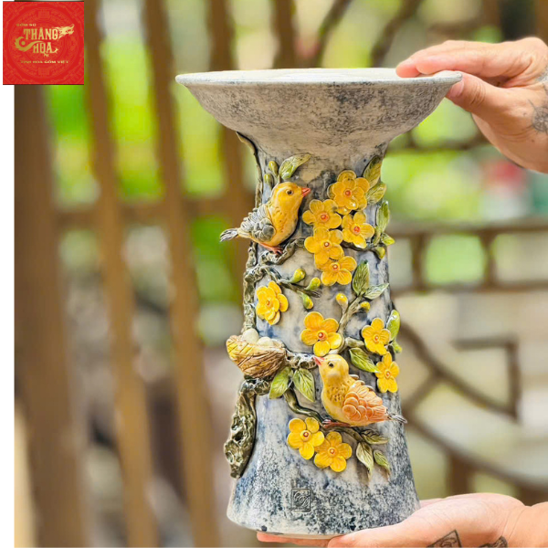 Lọ Hoa Đắp Nổi Chim Hoa H25