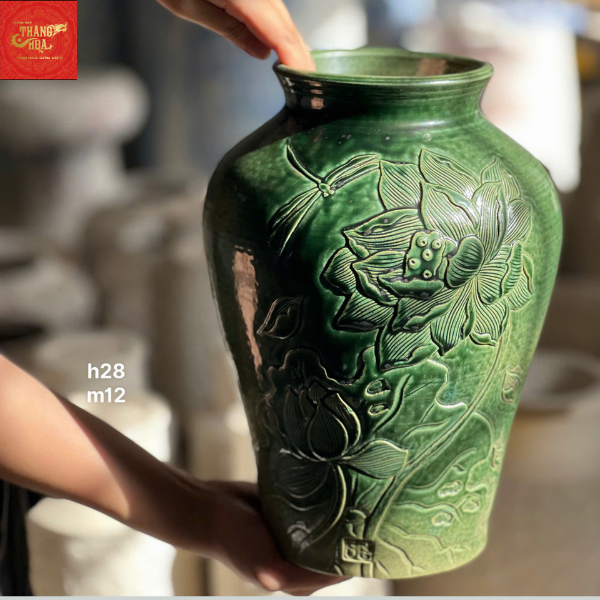 Nhân bản từ Lọ Hoa Khắc Nổi Men Lục Bảo H29