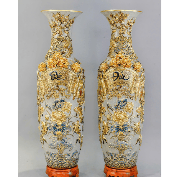 Lọ lộc bình Phúc Đức Men Rạn đắp nổi Vẽ Vàng