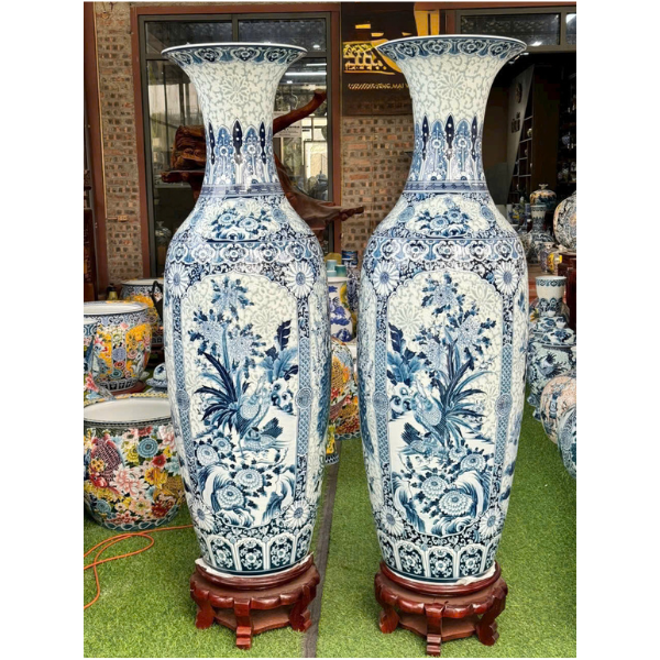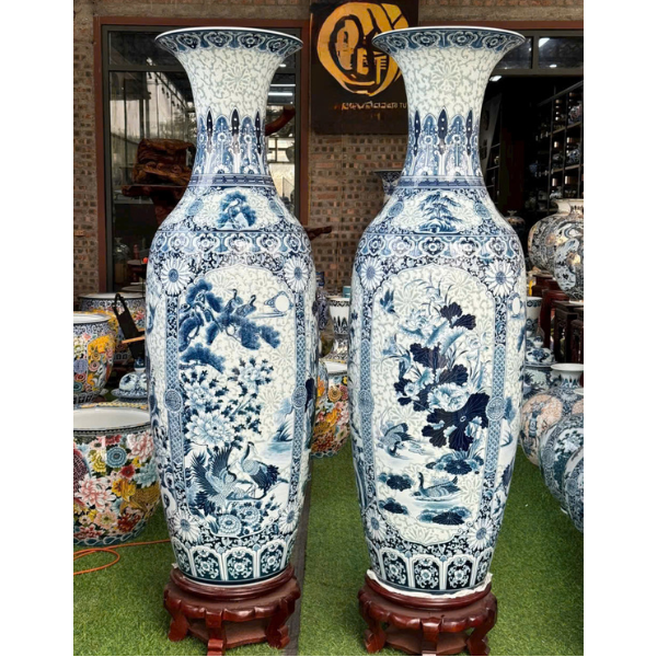 Lọ Lộc Bình Tứ Cảnh Nền Gấm Men Lam 1M40