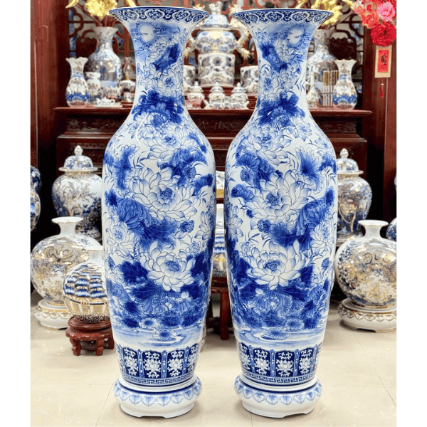 Lọ Lộc Bình Liên Hoa Cát Tường Men Lam