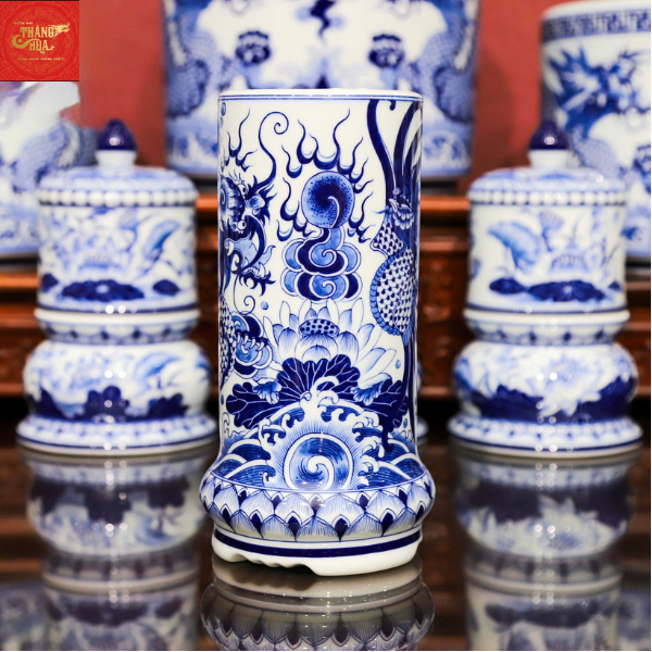 Ống Hương Rồng Phượng Men Lam