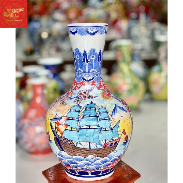 Lọ Tỏi Cổ Thẳng Vẽ Nhị Cảnh Thuận buồm Xuôi gió-Công Danh Phú Qúy H48