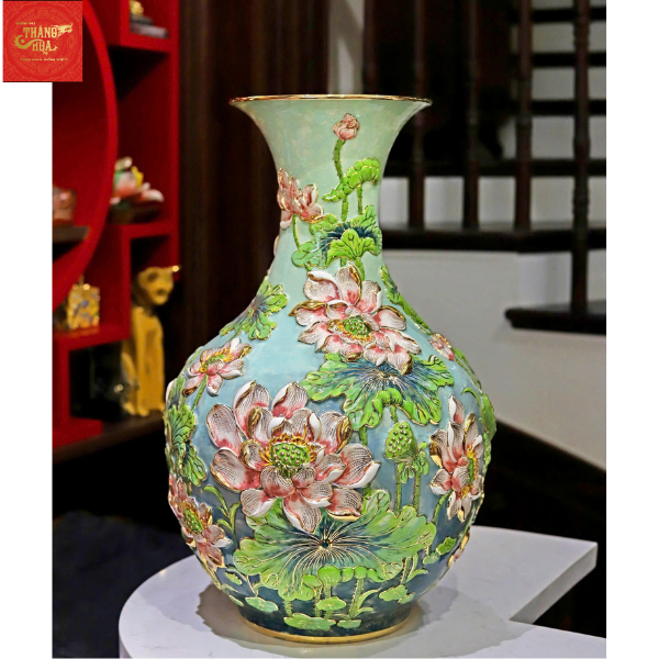 Lọ Tỏi Miệng Loe -Đắp Nổi Vẽ Vàng-Hoa Sen H40