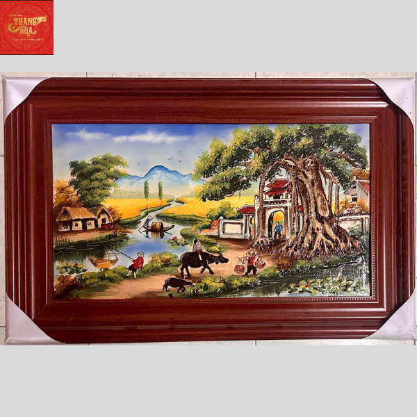 Tranh Sứ Cảnh Làng Quê KT 90CM*60CM
