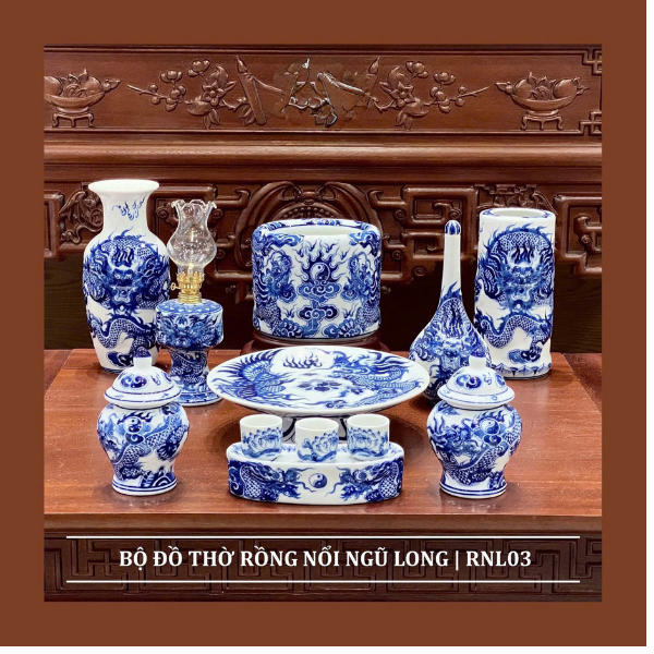 Bộ Đồ Thờ Rồng Nổi Ngũ Long Men Lam