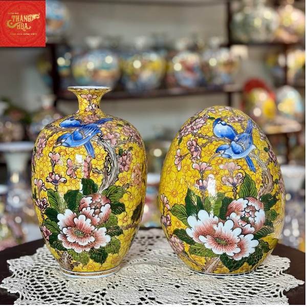 Trứng Tài Lộc Nền Gấm Vàng Chim Hoa