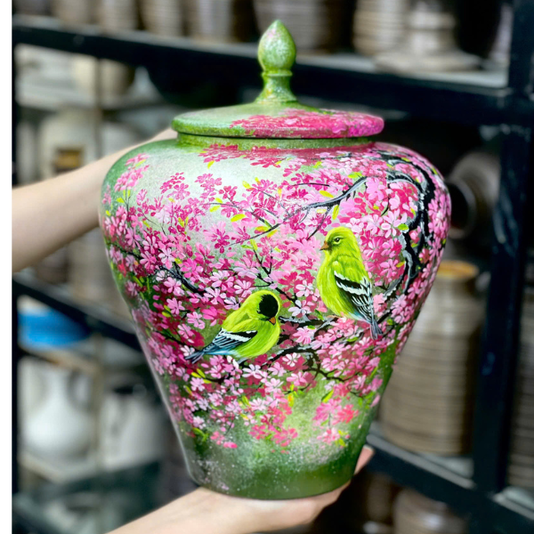 Vò Cắm Hoa Họa Tiết Chim Hoa H39