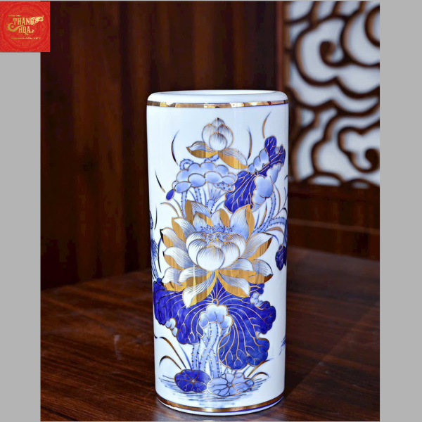 ống Hương Men Lam Vẽ Vàng